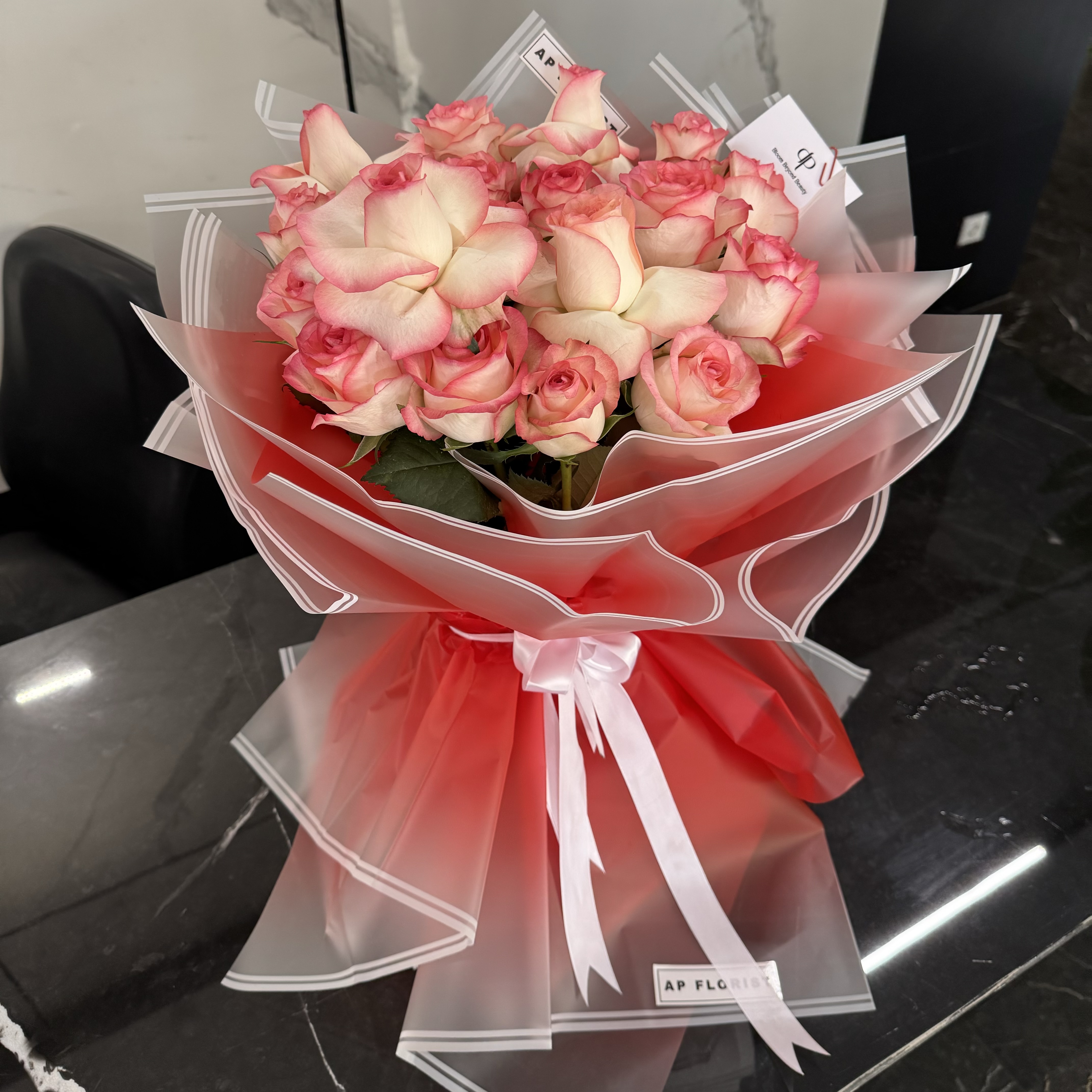 دستـهگل جومیلیا ؛ ترکیبی ترند از بیسـت شاخه رز هلندی که قالب دستهگلهای ایستاده و بدون نیاز به گلدان آب گالری ارائه میشود. قابلیت تغییر رنگ برای شما عزیزان فراهمه. برای موندگاری بیشتر گلها کافیه ؛ ۱- در فضای خنک نگهداری شود. ۲- اسفنج گلها روزانه خیس شود.