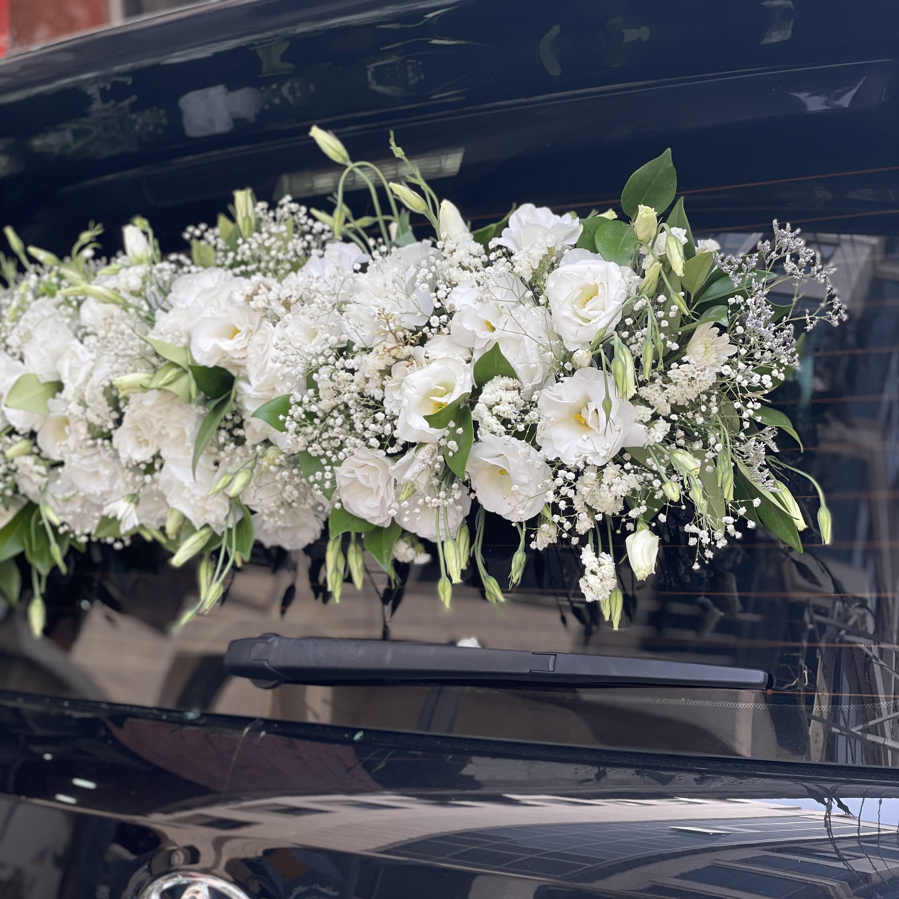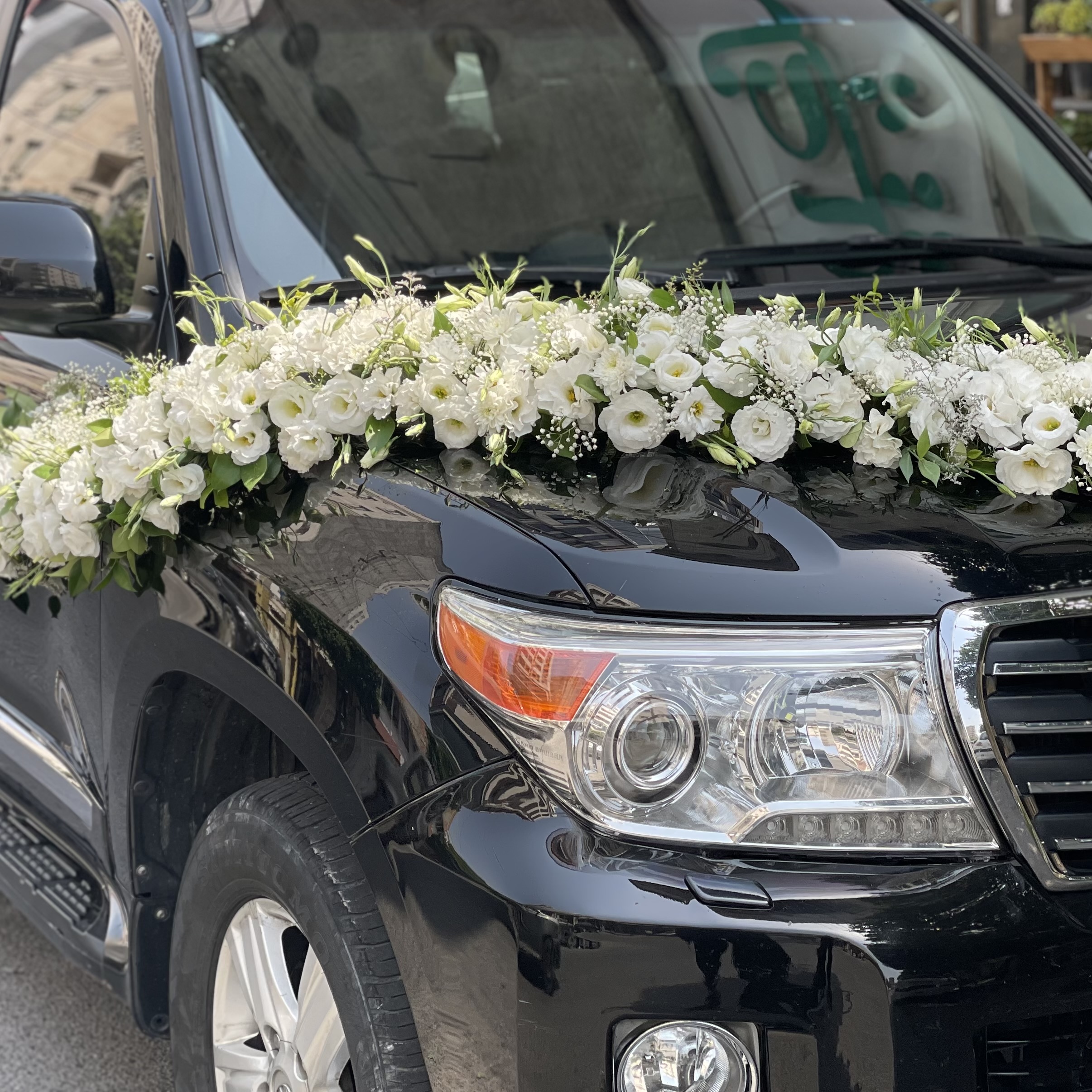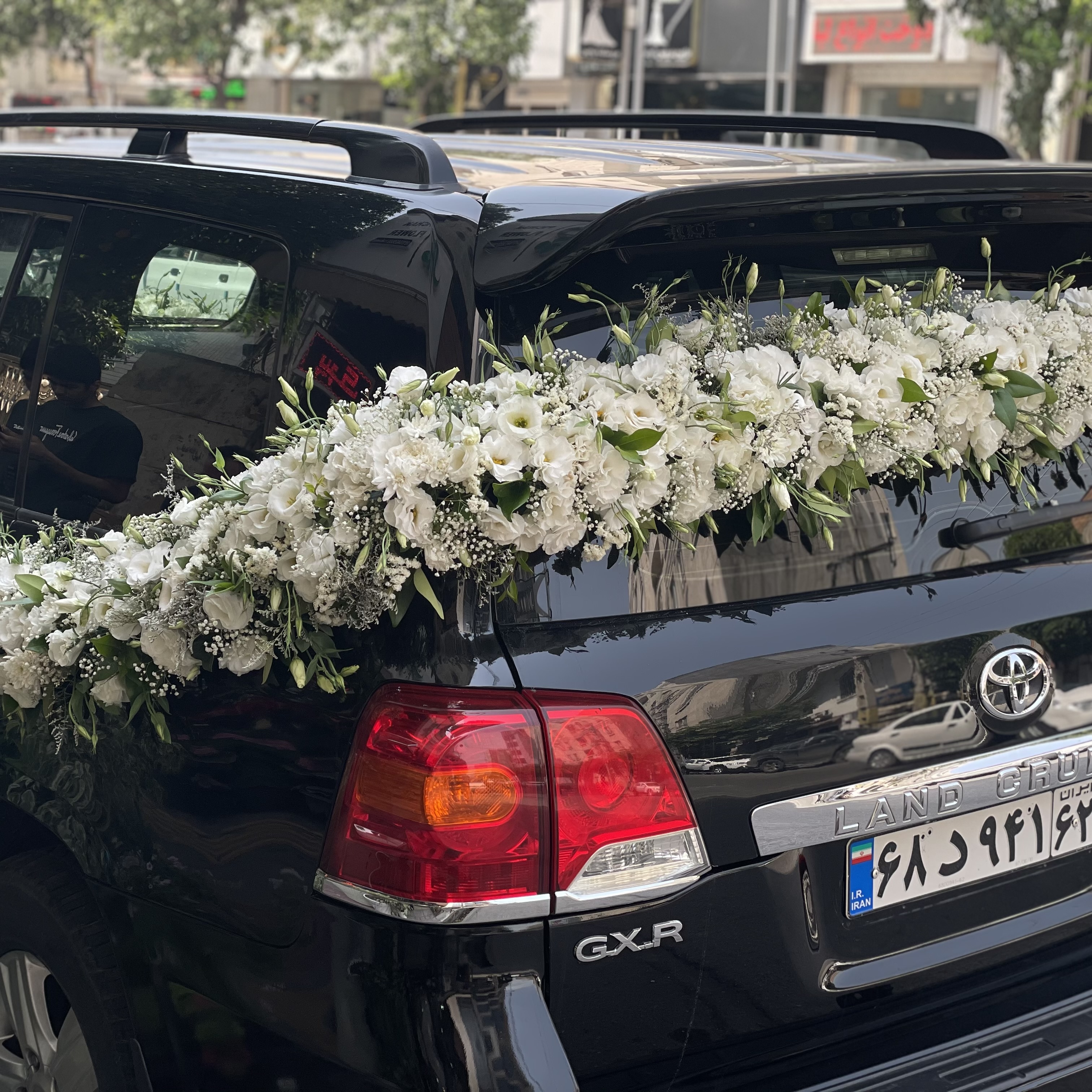 ماشـین عروس میسـورا ؛ ترکـیبی لوکس و پر حجم از گلهای “لیسینتوس، ژیپسو و رز هلندی که بصورت خطی در جلو و عقب ماشین دیزاین شده. قابلیت تغییر رنگ برای شما عزیزان فراهم است.