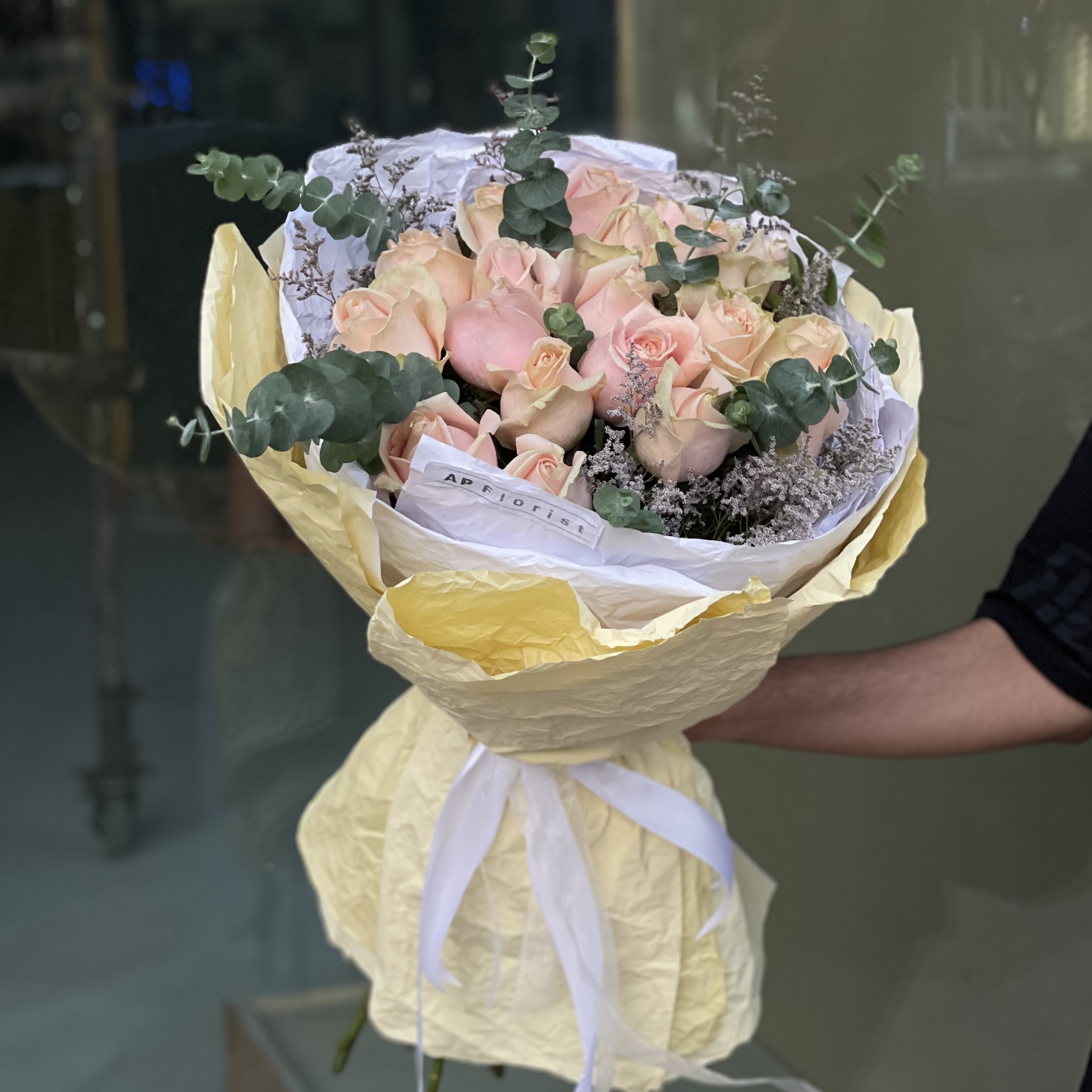 دستـهگل مچالـه ؛ ترکـیبی از بیسـت شاخه رز هلندی با کاور مچـاله که در دو سایز بزرگ “ تصویر بالا “ و خیلی بزرگ “ چهـل شاخـه “ ارائه میشود. قابلیت تغییر رنگ برای شما عزیزان فراهم شده. برای موندگاری بیشتر گلها کافیه ؛ ۱- در فضای خنک نگهداری شود. ۲- اب گلها روزانه عوض شود. ۳- ساقهی گلها روزانه کوتاه شود.
