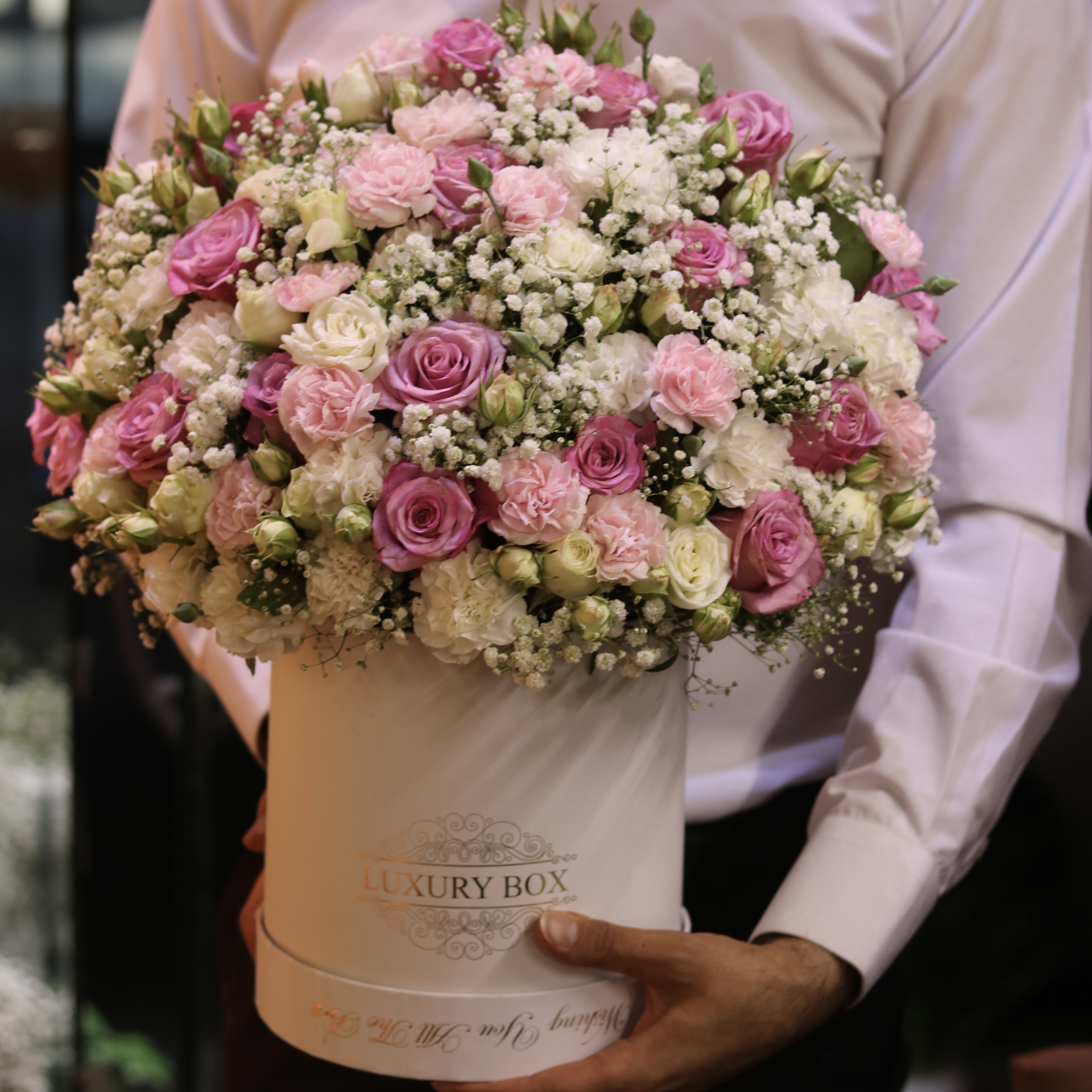 باکـسگل پارس ؛ ترکیبی از گلهای “ رز هلندی صورتی، رز مینیاتوری، میخـک سفید و صورتی و ژیپسوفیلا “ که برای مناسبتهای مختلف پیشنهاد میشه. برای موندگاری بیشتر گلها کافیه ؛ ۱- در فضای خنک نگهداری شود. ۲- اب گلها روزانه عوض شود. ۳- ساقهی گلها روزانه کوتاه شود.
