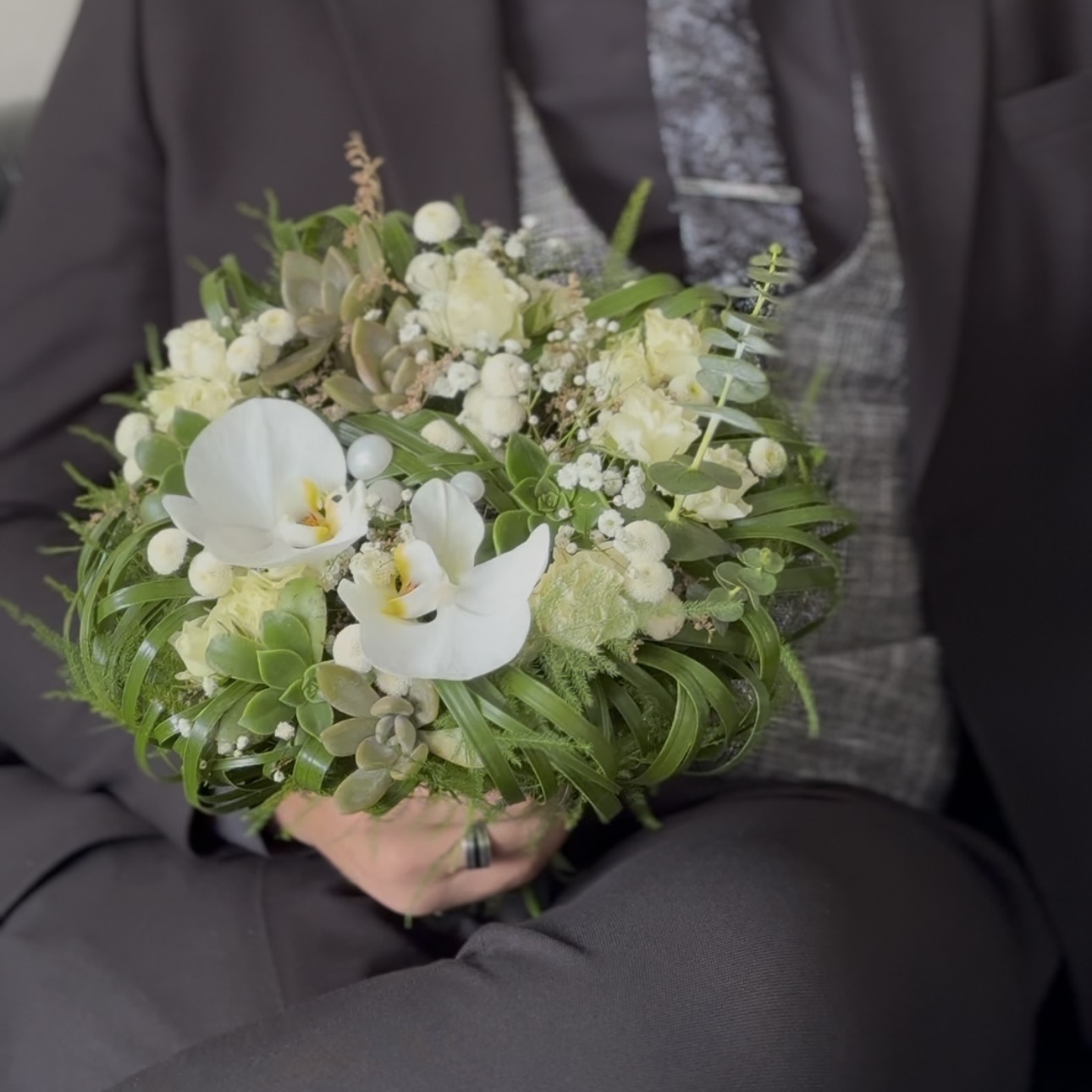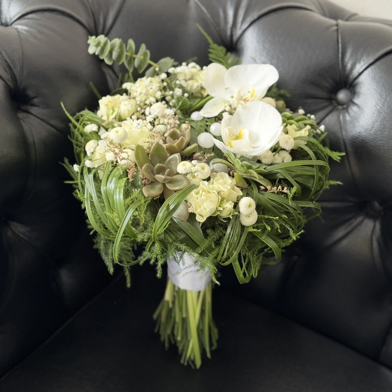 دستـهگل عروس مانا ؛ ترکـیبی لوکـس و متفاوت از کاکتـوس، مروارید، ارکیده هلندی، رز مینیاتوری و برگهای زینتی که در قالب دستهگلهای ترند اروپا ارائه میشود. برای موندگاری بیشتر گلها کافیه ؛ ۱- در فضای خنک نگهداری شود. ۲- اب گلها روزانه عوض شود. ۳- ساقهی گلها روزانه کوتاه شود.
