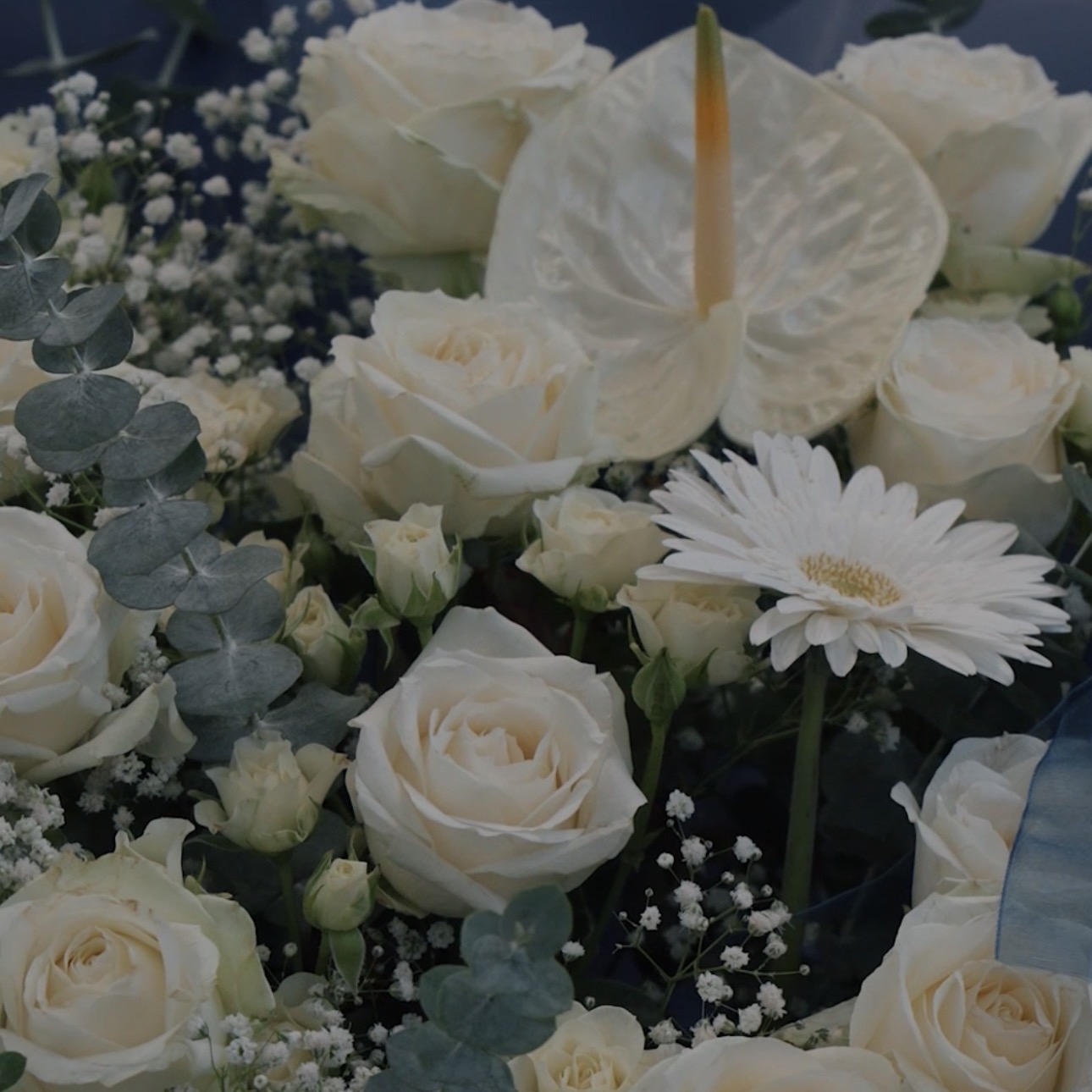 رز هلنـدی ، رز مینیاتوری خوشـهای ، ژربـرا ، آنتریـوم ، برگ اکالیپـتوس و ژیپسوفیلا