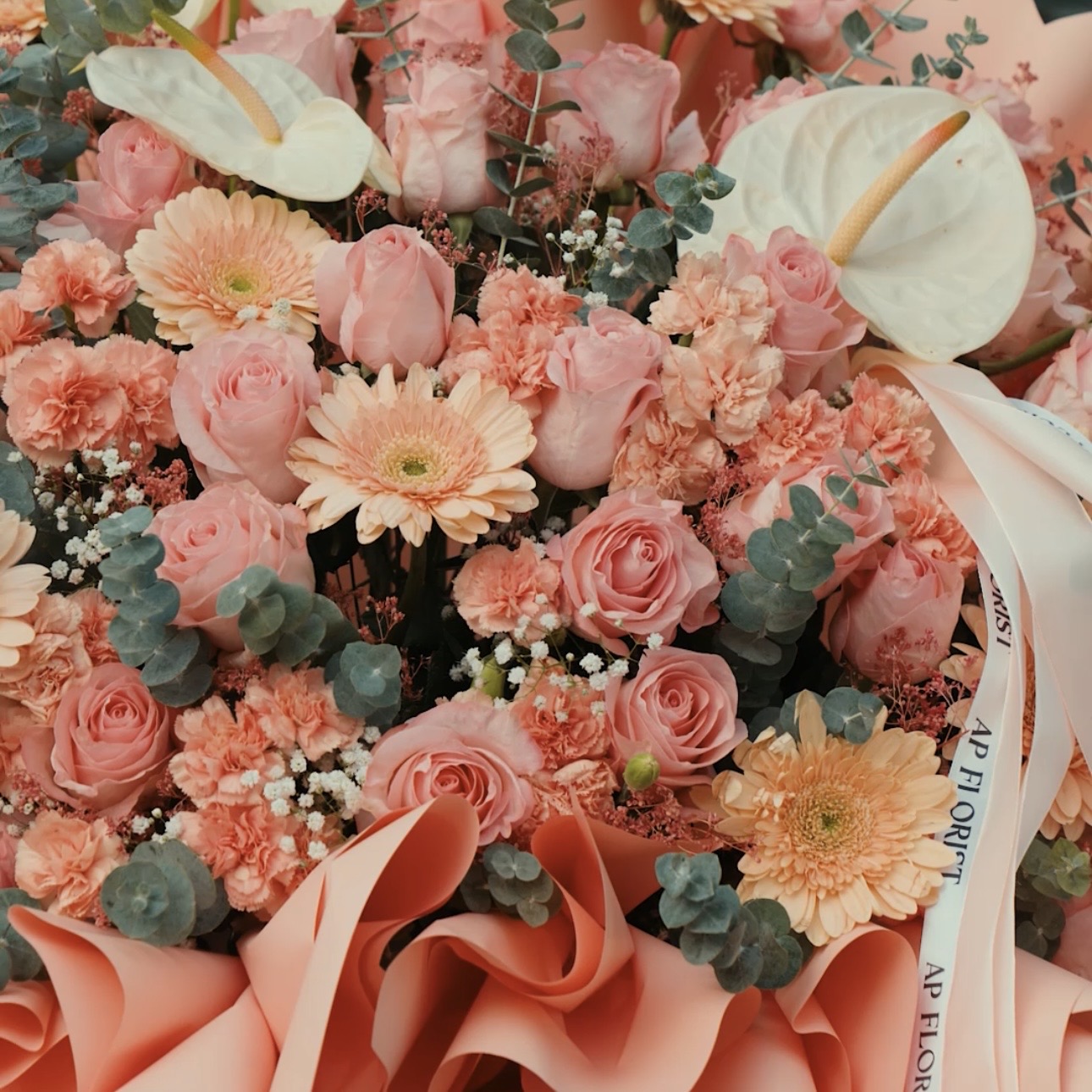 رز هلندی، ژربرا، آنتریوم، برگ اکالیپتوس، میخک