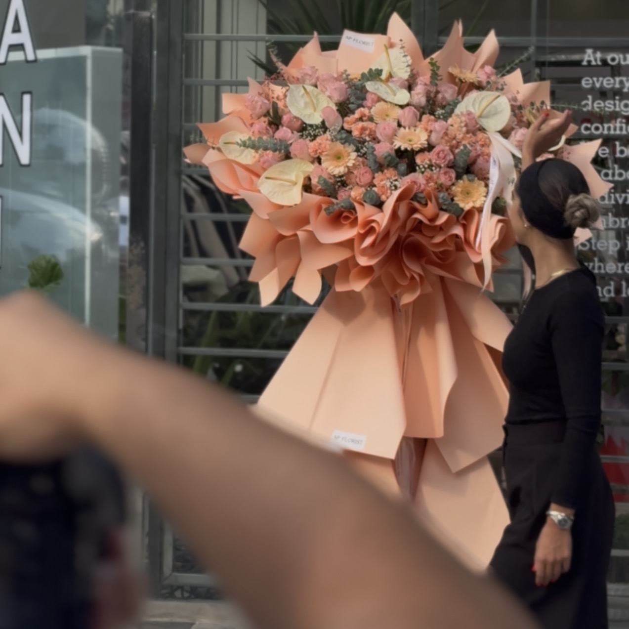 دستـهگل نیلورا ؛ ترکیبی لوکس و خاص از رزهای گلبهای، آنتریوم، ژربرا و اکالیپتوس که در ارتفاع ۲۳۰ سانت و با قابلیت تغییر رنگ و سایز ارائه میشود. برای موندگاری بیشتر گلها کافیه ؛ ۱- در فضای خنک نگهداری کنین ۲- روزانه پنج لیوان آب در اسفنج بریزید.