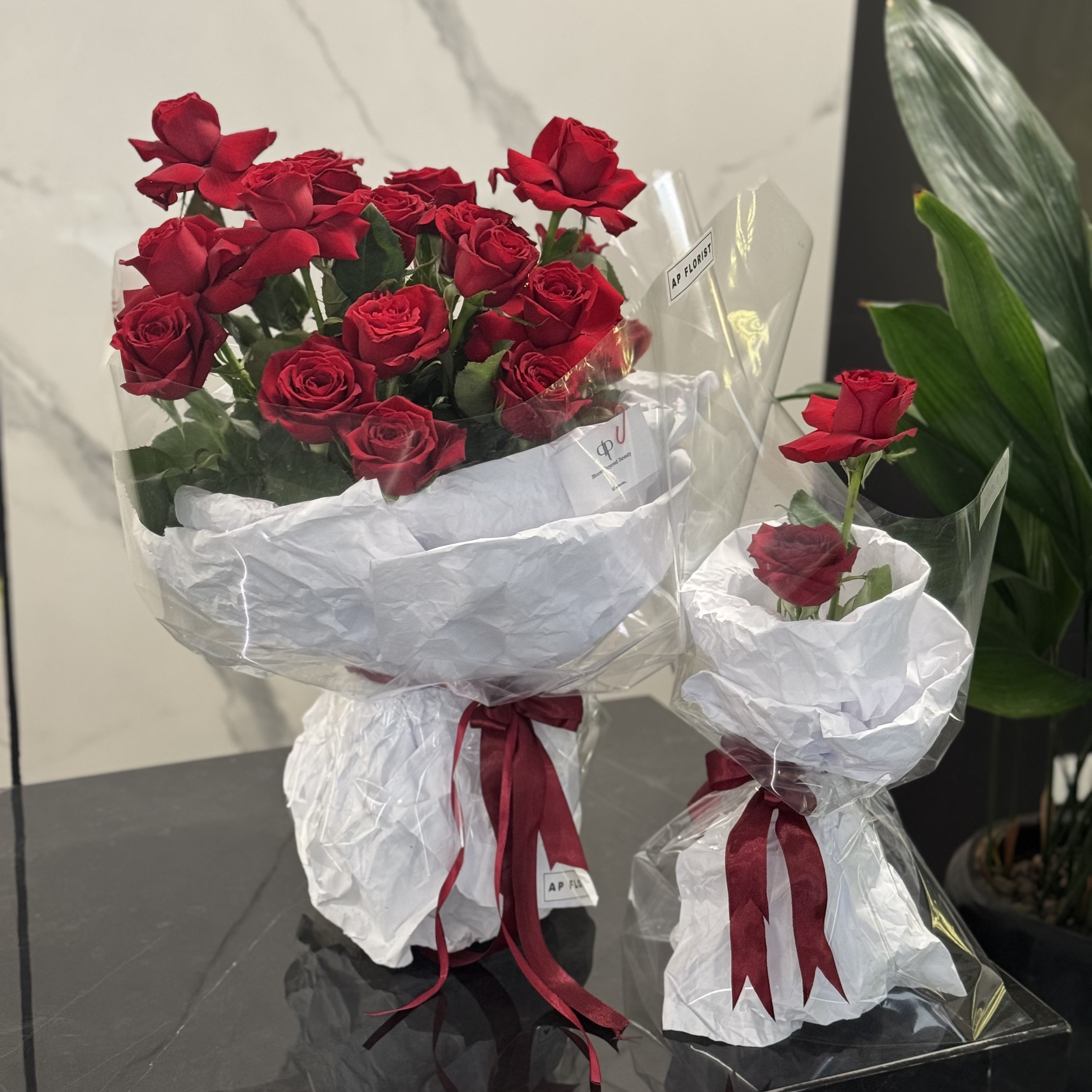دستـهگل سرخین ؛ ترکـیبی ماندگار و پرتکرار از رز هلنـدی قرمز که تلفـیقی از سادگـی و اصالته و بدون نیاز به گلدان آب و در قالـب دستهگلـهای ایستـادهی مجموعه ارائـه میشود. برای موندگـاری بیشتر گلهـا کافیه ؛ ۱- در فضای خنک نگهداری کنین. ۲- روزانه سه لیوان آب در سطح وسط گلـها بریزید.