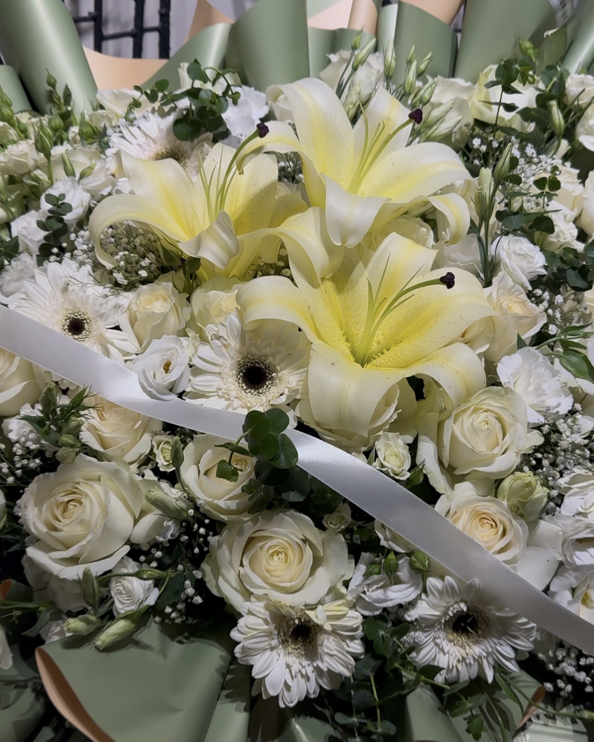 دستـهگل آرونیا ؛ ترکـیبی یونـیک و خاص از گلهای “ رز هلندی سفید، ارینـتال، ژربـرا، لیسـین و رز مینیاتوری “ که تلفـیقی از سادگـی و لوکـس بودنه و بدون نیاز به گلدان آب و در قالـب دستهگلـهای ایستـادهی مجموعه ارائـه میشود. برای موندگـاری بیشتر گلهـا کافیه ؛ ۱- در فضای خنک نگهداری کنین. ۲- روزانه پنج لیوان آب در سطح وسط گلـها بریزید.